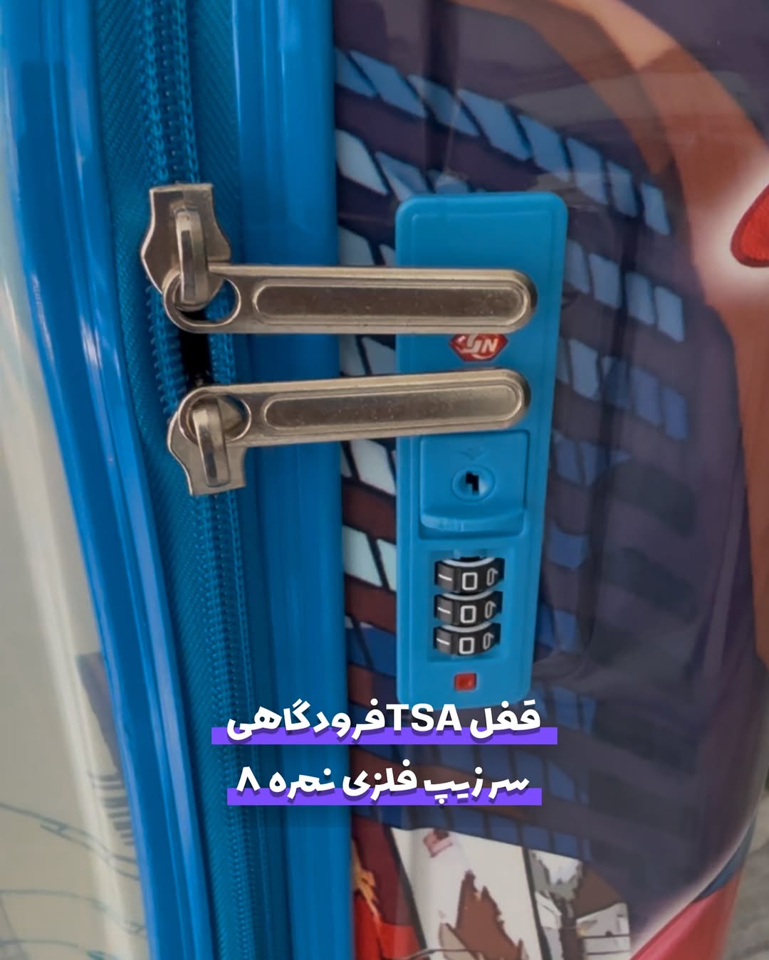 جنس بدنه کار پلی کربنات منعطف زیپ دبل ضد سرقت سر زیپ نمره ۸فلزی چهارچرخ دبل ژله ای جدا شو دسته تراولی روکش کروم ۲استپه آستری با کیفیت قفل تی اس ای فرودگاهی